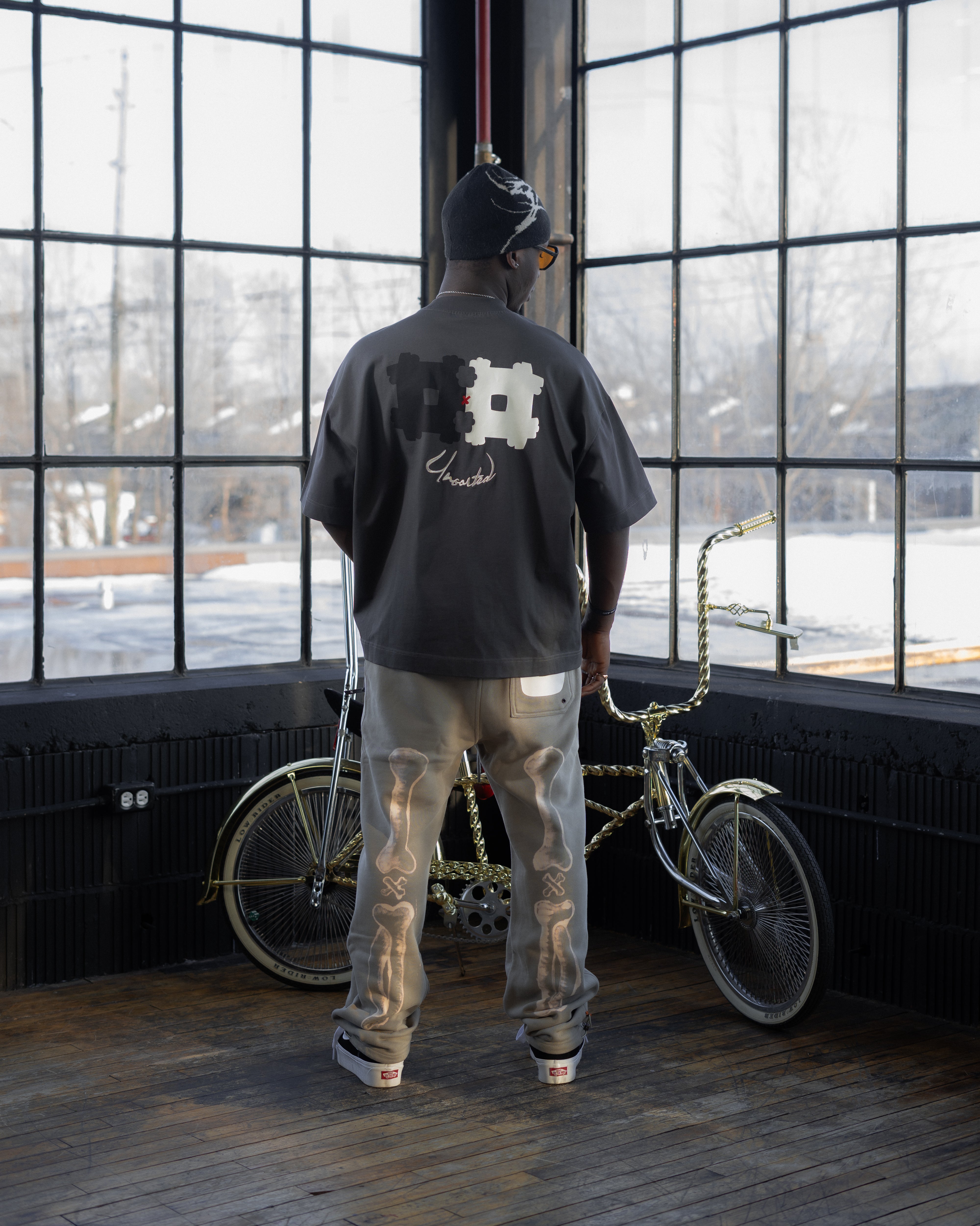 Each piece is unique in this capsule, it’s hand-painted, drawn or distressed on the Unsorted x pieces to further tell a story or convey emotions.